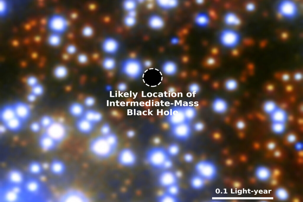 Esta teoría está respaldada por la detección de un agujero negro de masa intermedia en su centro, con una masa de unas 40 000 veces la del Sol. Mientras que los agujeros negros supermasivos son comunes en el centro de las grandes galaxias y los de masa estelar se forman a partir de estrellas individuales, los de masa intermedia son increíblemente esquivos. Su presencia en Omega Centauri refuerza la idea de que es el núcleo de una antigua galaxia, ya que se espera que estos objetos residan en el centro de galaxias más pequeñas.